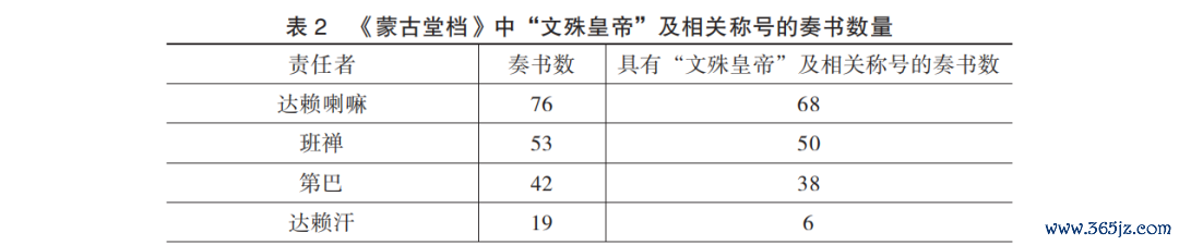 (三)“文殊天子”名称在蒙古和西藏场合奏书中的使用情况