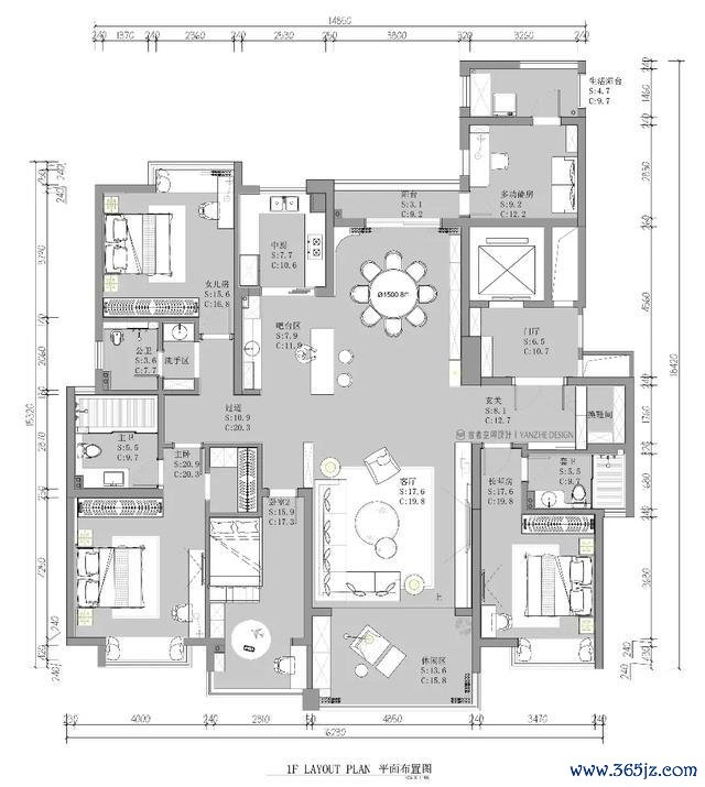 这是家里举座的平面布局,蓄意合理,户型南北通透,五室两厅三卫户型。平面蓄意是一个家庭装修的灵魂。